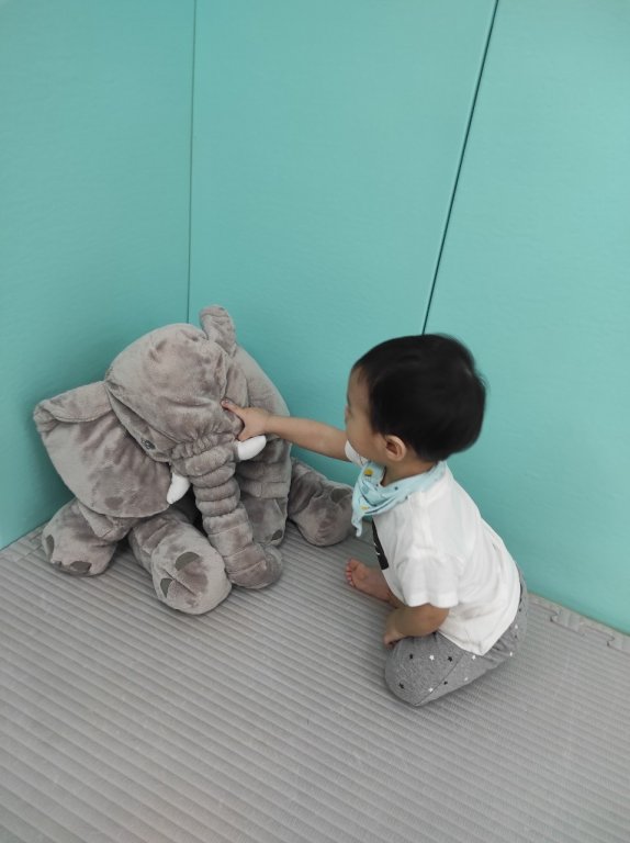 利用大象玩偶擁抱,抱抱代表愛與親密,在嬰兒、幼兒,等不同階段,擁抱具備著各種好處,多抱孩子滿足的不只是孩子的安全感、父母表達愛意的方式,對孩子未來的整體發展,都有莫大的好處喔~