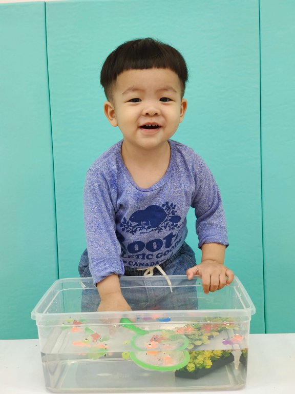 透過撈魚活動提升寶貝精細動作發展,也藉此認識水中生物。